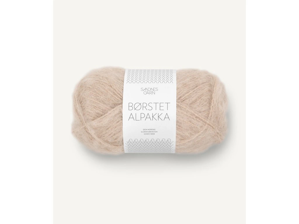 BORSTET ALPAKKA je velice jemná a vzdušná brushed (kartáčovaná) alpaka s luxusním vzhledem. Skvělá na nadýchané lehké, ale hřejivé projekty od šál a čepic až ke svetrům a kardiganům.