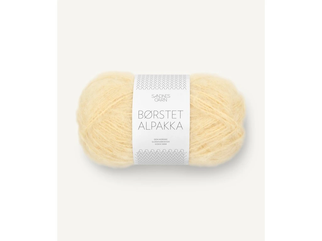 BORSTET ALPAKKA je velice jemná a vzdušná brushed (kartáčovaná) alpaka s luxusním vzhledem. Skvělá na nadýchané lehké, ale hřejivé projekty od šál a čepic až ke svetrům a kardiganům.
