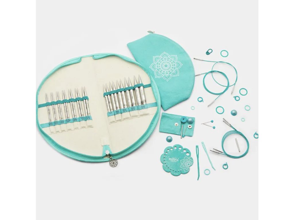 Luxusní sada výměnných kovových jehlic řady Mindfull od značky KnitPro s bohatým příslušenstvím.