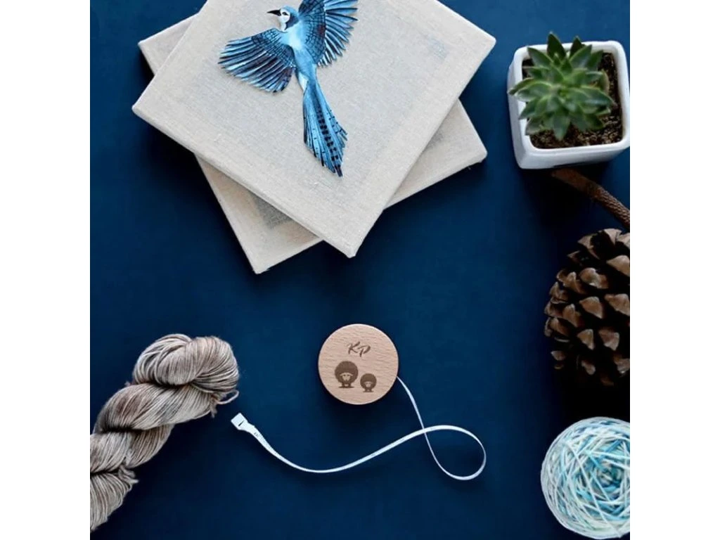 Luxusní svinovací metr v dřevěném pouzdru od značky KnitPro.