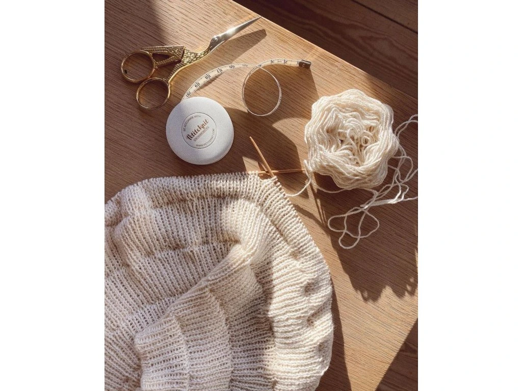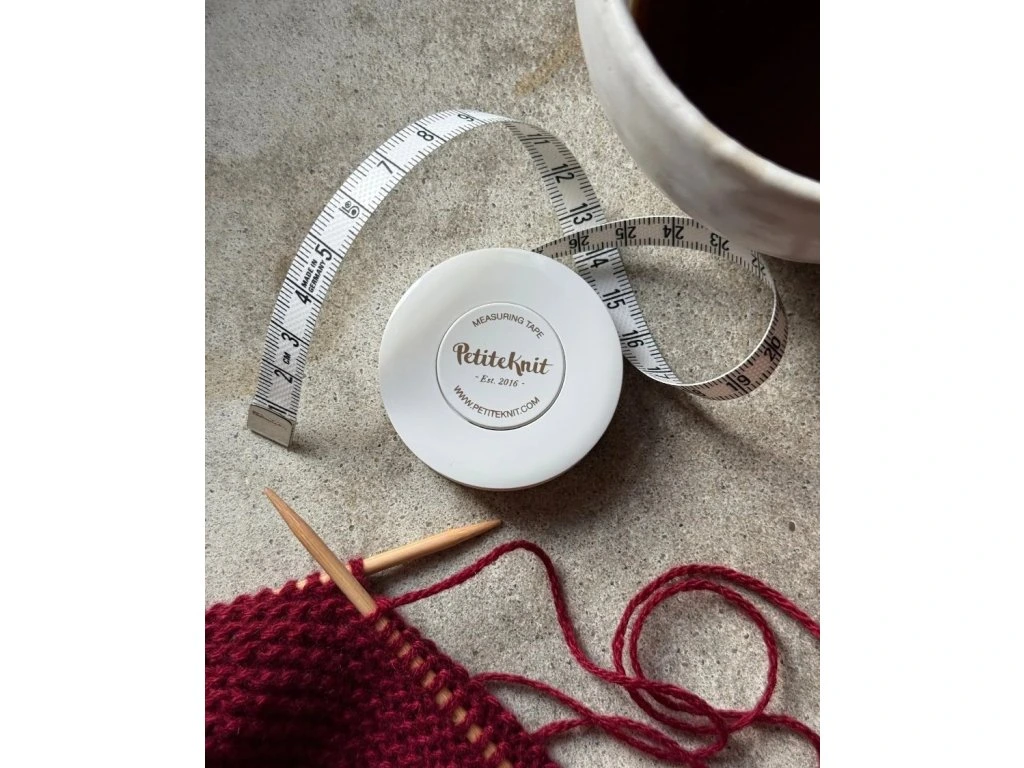 Svinovací metr v plastovém pouzdru od značky PetiteKnit.